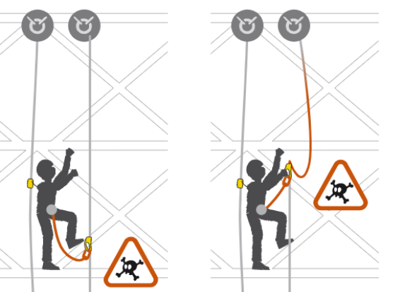 手升又稱為連接牛尾,牛尾為使用者提供了便利性和移動性,但也帶來了風(fēng)險,使用者稍加疏忽,可能會位于抓繩器之上,或牛尾松弛,這就帶來了潛在的墜落風(fēng)險。和胸升一樣,我們需要盡可能保持其受力狀態(tài),以減少自由墜落的可能。